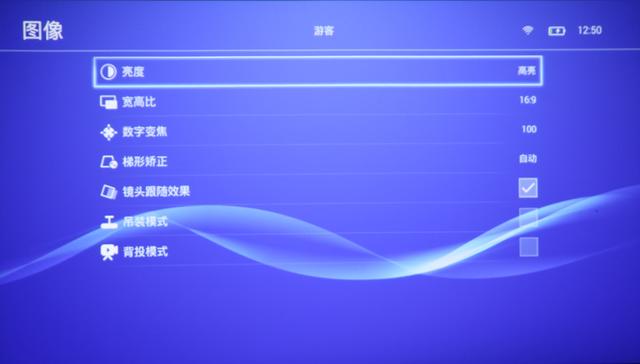 在图像显示栏中用户可以对你的亮度、宽高比等进行调节,用户可以根据实际使用环境不同来调节你的亮度从而达到最好的视觉体验和节能效果。目前的高宽比支持常用的16:9和4:3两种,用户可以根据播放的视频尺寸进行相应的调整。至于你的投影方式我们支持目前常用的正投、背投、吊装正投、吊装背投等四种方式。