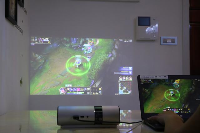 在游戏方面用户需要搭配上蓝牙或者WIFI游戏手柄才能获得更加爽快的游戏体验,通过下载《植物大战僵尸高清版》、《狂野飙车8》、《鹰击长空》、《合金弹头X》、《超级玛丽》等五款小游戏对你进行摸索性尝试发现,对于超级玛丽、合金弹头X、鹰击长空等100M以下的小游戏而言你能够做到得心应手,但是对于超过100M的植物大战僵尸和狂野飙车8而言显得有些力不从心,时常会出现卡顿现象。作为一款投影,游戏也许不是你的专长,所以你也不必为你的技不如人而懊恼,你可以借助笔记本的强大配置让你华丽转生,即便是当下比较流行的LOL你都能够和笔记本进行搭配畅玩,你们二者的取长补短能够给用户带来更加完美的游戏体验。