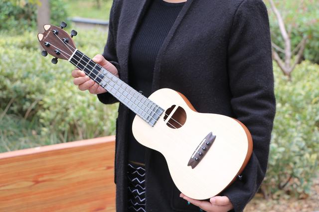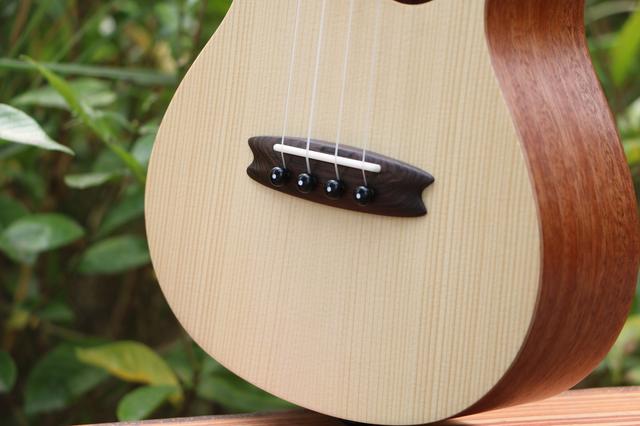 Populele智能尤克里里-咪蒙腔体面板采用精选A级英格曼云杉木合板,木纹纹理清晰均匀,合板表面的环保漆融合了9道工序,使得Populele智能尤克里里-咪蒙身躯不仅环保无毒,同时使得表面手感更加细腻,触感更佳自然。