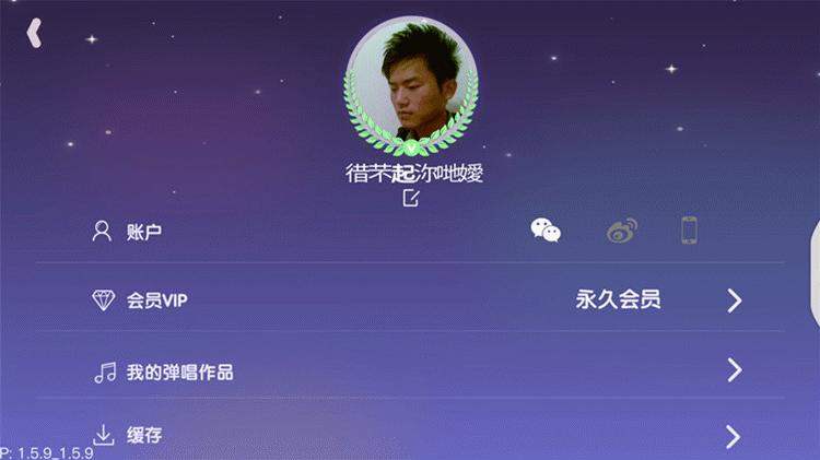个人中心包括账号、会员VIP、我的弹唱作品、缓存、入门视频和登出。登陆账号按要求绑定好Populele智能尤克里里-咪蒙之后,系统会默认永久赠送VIP会员,应用中的歌曲可以随意学弹。