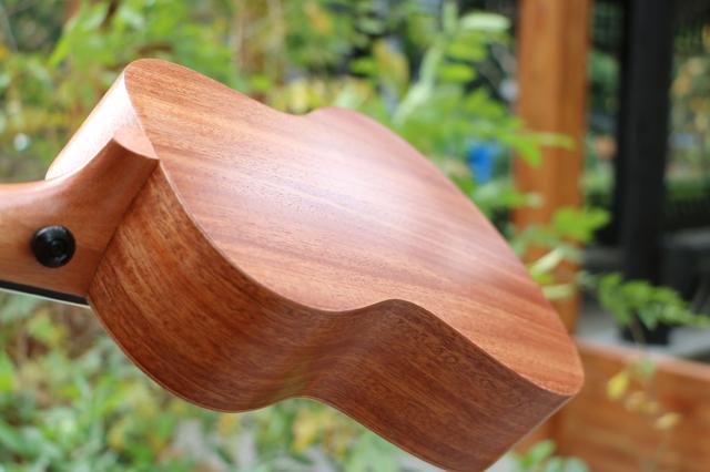 Populele智能尤克里里-咪蒙背板和侧板选用非洲桃花芯木,它与腔体面板形成的了鲜明的对比,双色搭配产生的效果可谓是无与伦比。Populele智能尤克里里-咪蒙的背板与手接触过程中会发出清脆的摩擦声,在二者接触的瞬间有一种莫名的丝滑感。